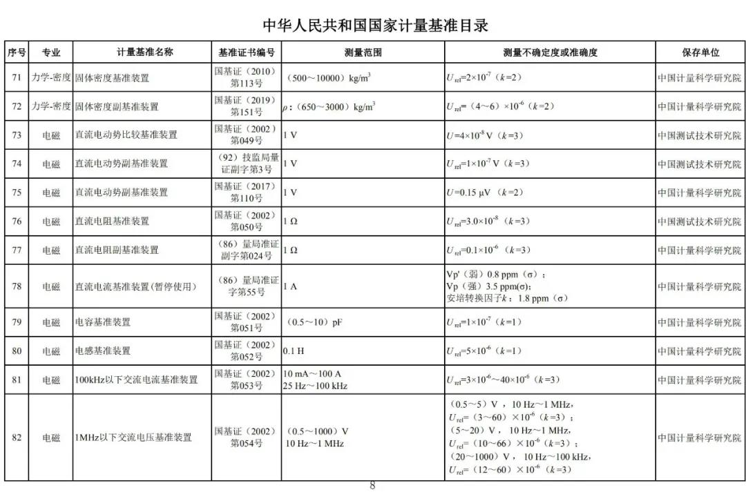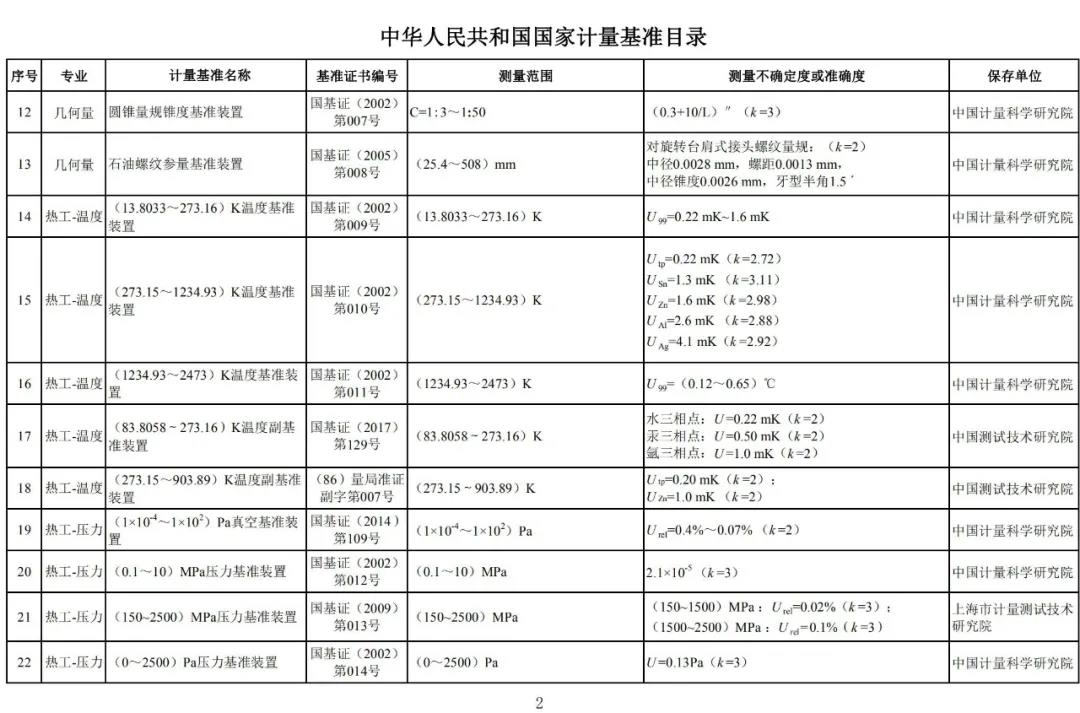 2月10日,市场监管总局发布公告(2021年第5号)批准部分国家计量基准单位量值复现采纳国际单位制新定义值。最新的中华人民共和国国家计量基准目录来了!