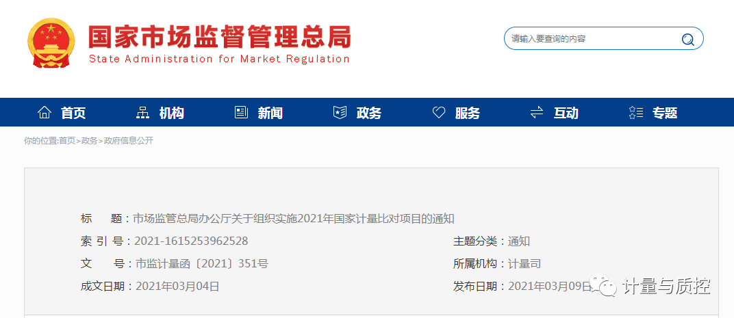 为贯彻落实《市场监管总局关于加强计量比对工作的指导意见》(国市监计量〔2020〕127号),更好发挥计量比对在保障量值准确一致、支撑计量事中事后监管和提升计量技术机构能力等方面的重要作用,市场监管总局决定组织实施28项国家计量比对项目。现将有关事项通知如下: