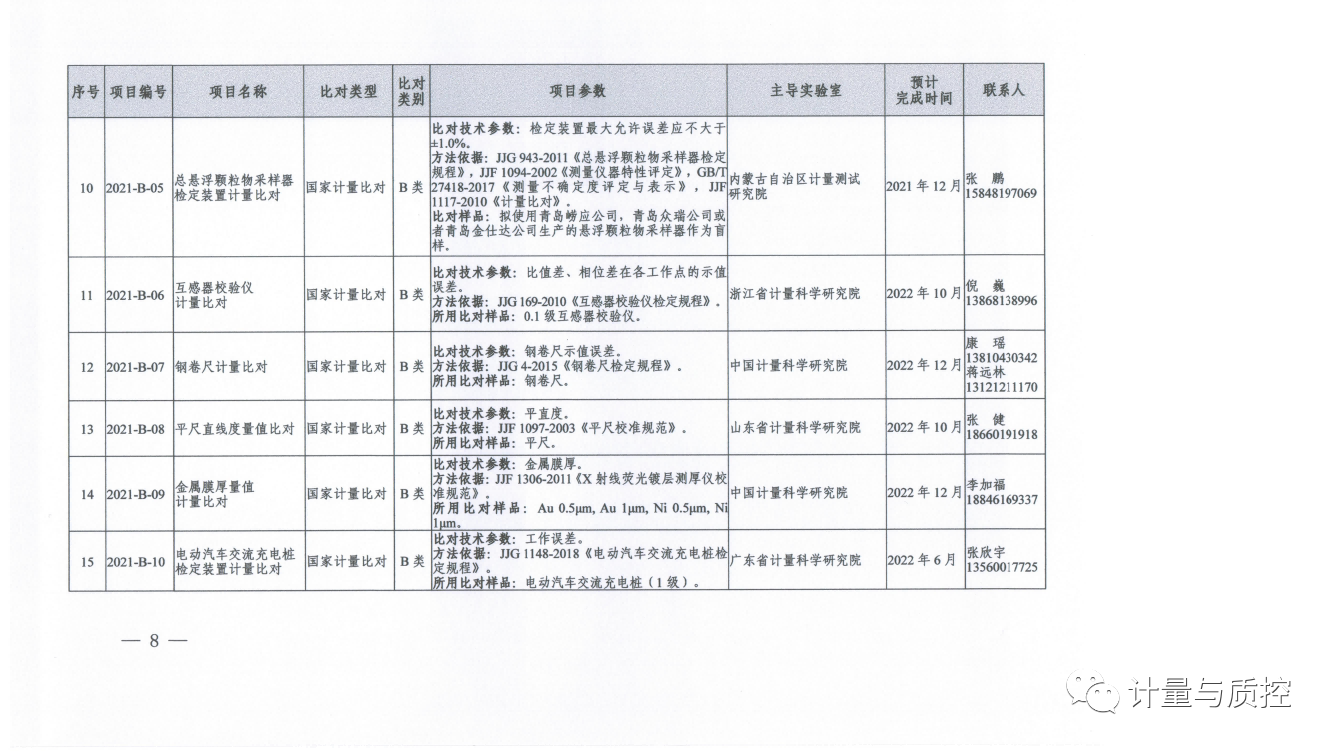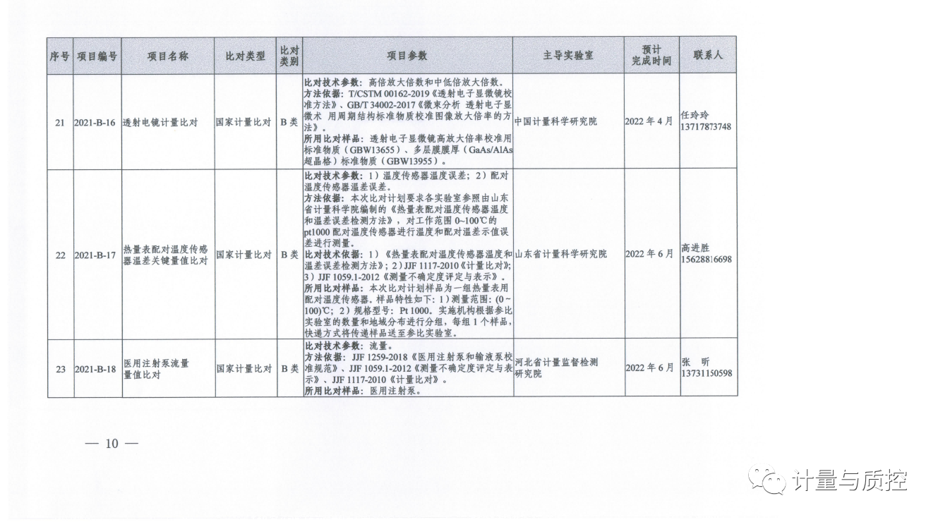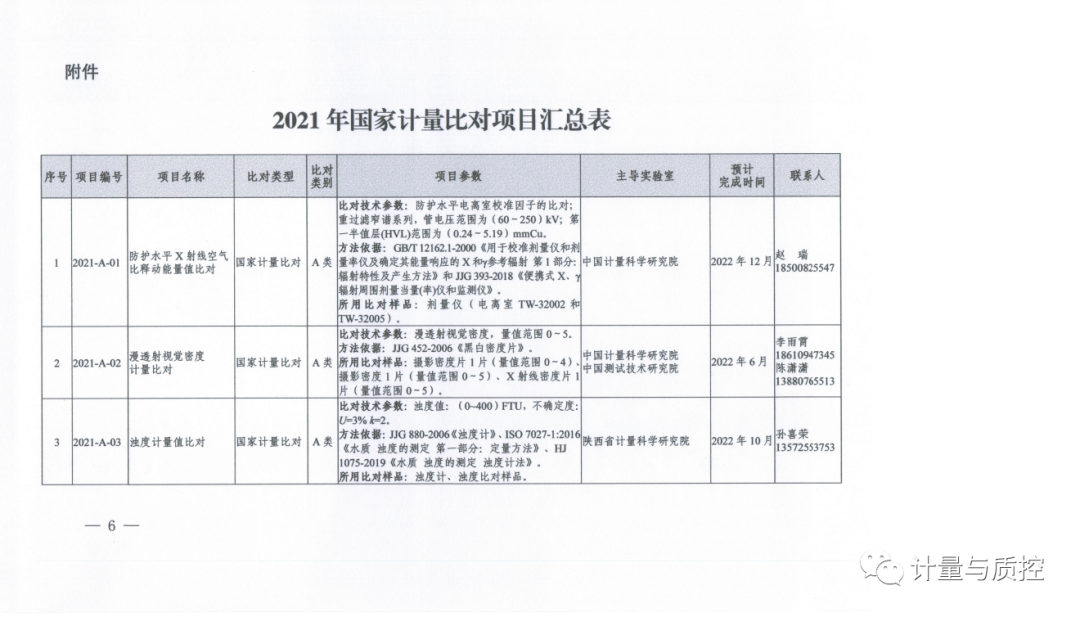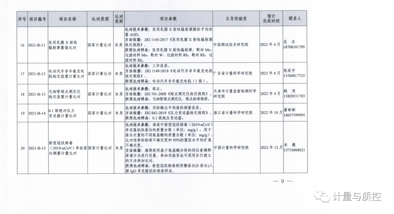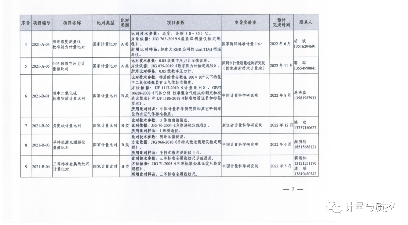 一、2021年国家计量比对项目