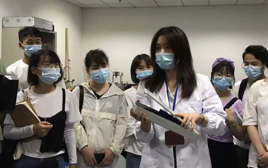 高校学生走进重庆计量质量检测研究院,工作人员讲解日常血压计等计量检测