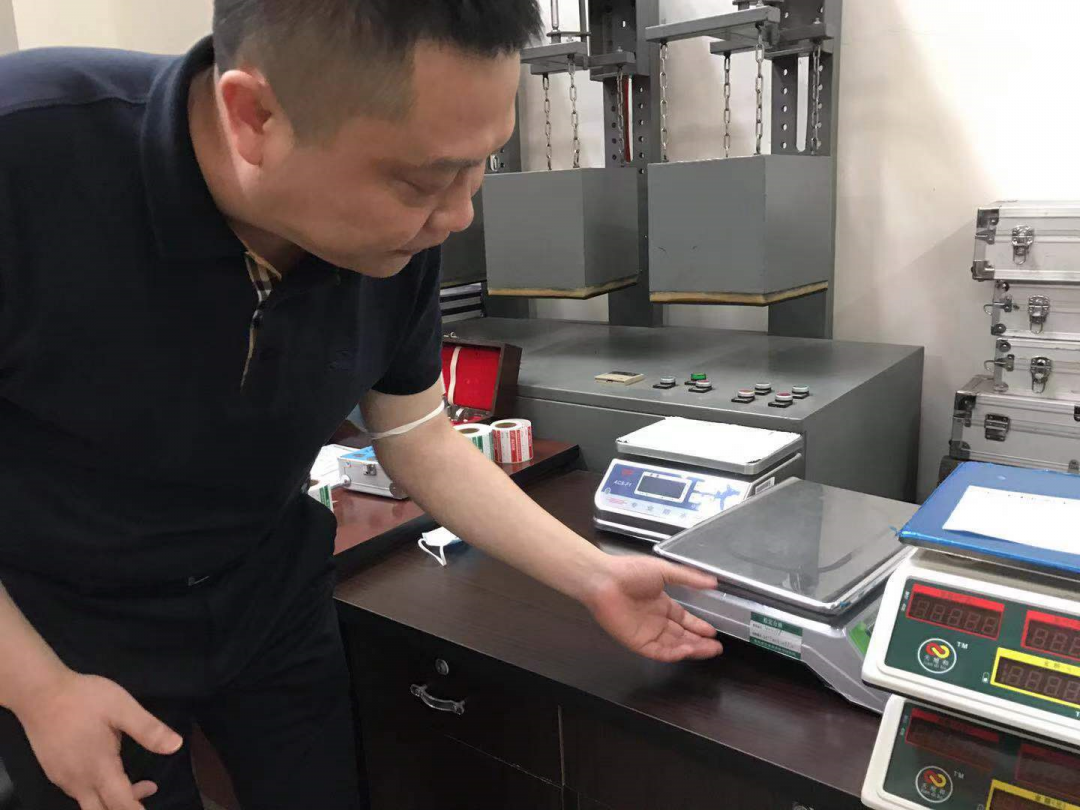 第二步:随身带好“参照物”。消费者也可以将自身携带的钥匙或者手机放在公平秤上称重,然后在销售者称好商品并且没有多余操作情况下,直接将钥匙或者手机放在电子秤上,查看量值是否准确。