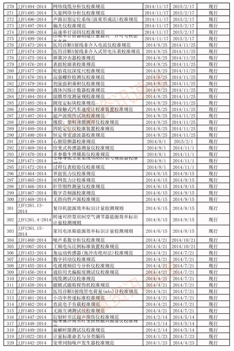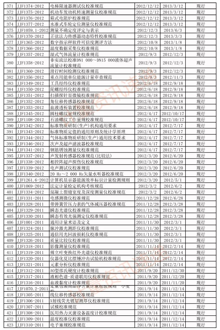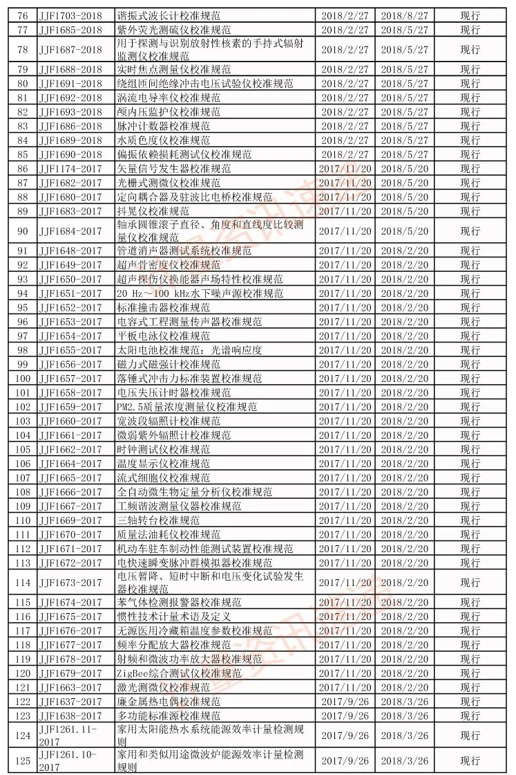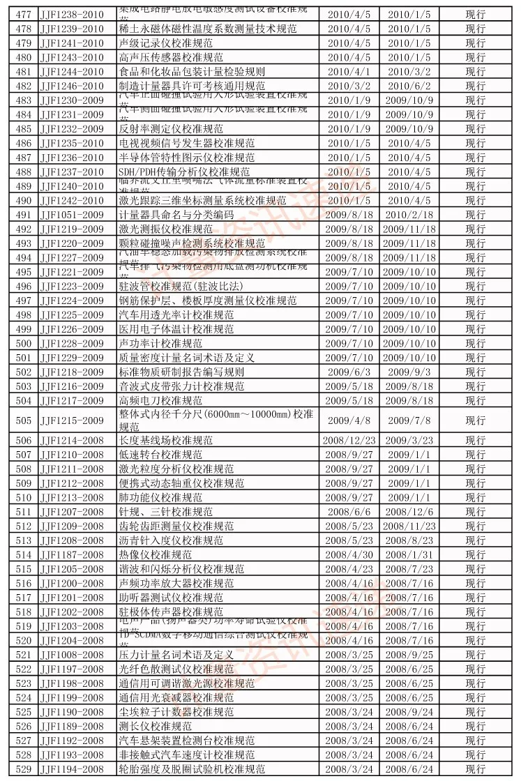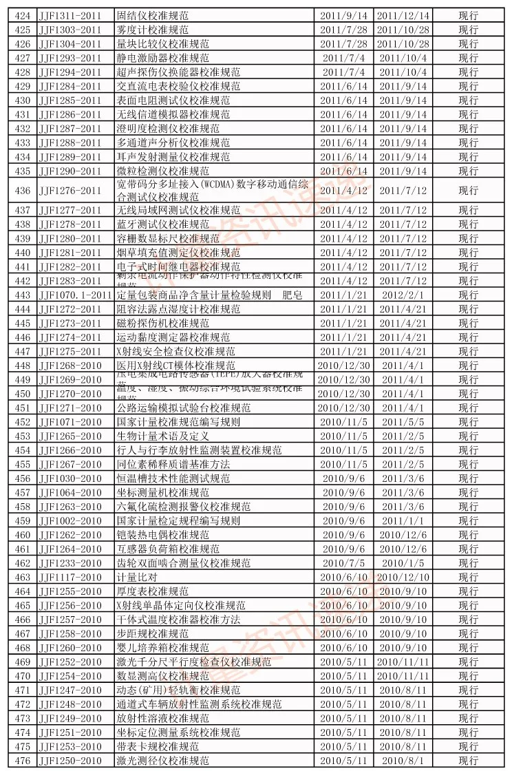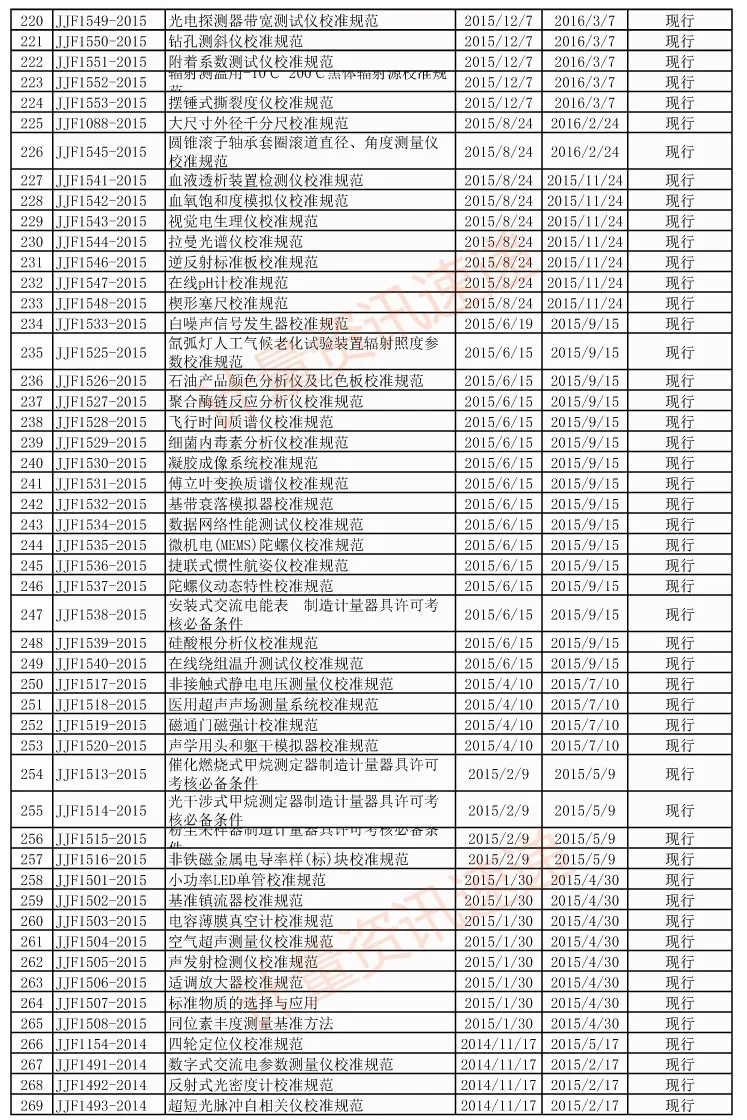 以下部分为国家市场监督管理总局已发布但尚未实施的计量校准规程汇总,52个计量校准规范将于2020年4月17日开始实施。