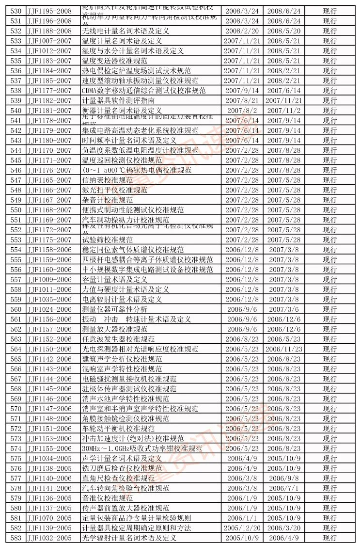 计量技术规范比较频繁!为方便量友查阅,为大家整理了我国现行计量校准规范汇总。根据统计,我国现行计量校准规范共有676个,已被替代计量校准规范12个,另有52个将于4月实施。本数据根据总局公开信息整理,详细以总局公告为准。以下为我国现行有效计量校准规范汇总: