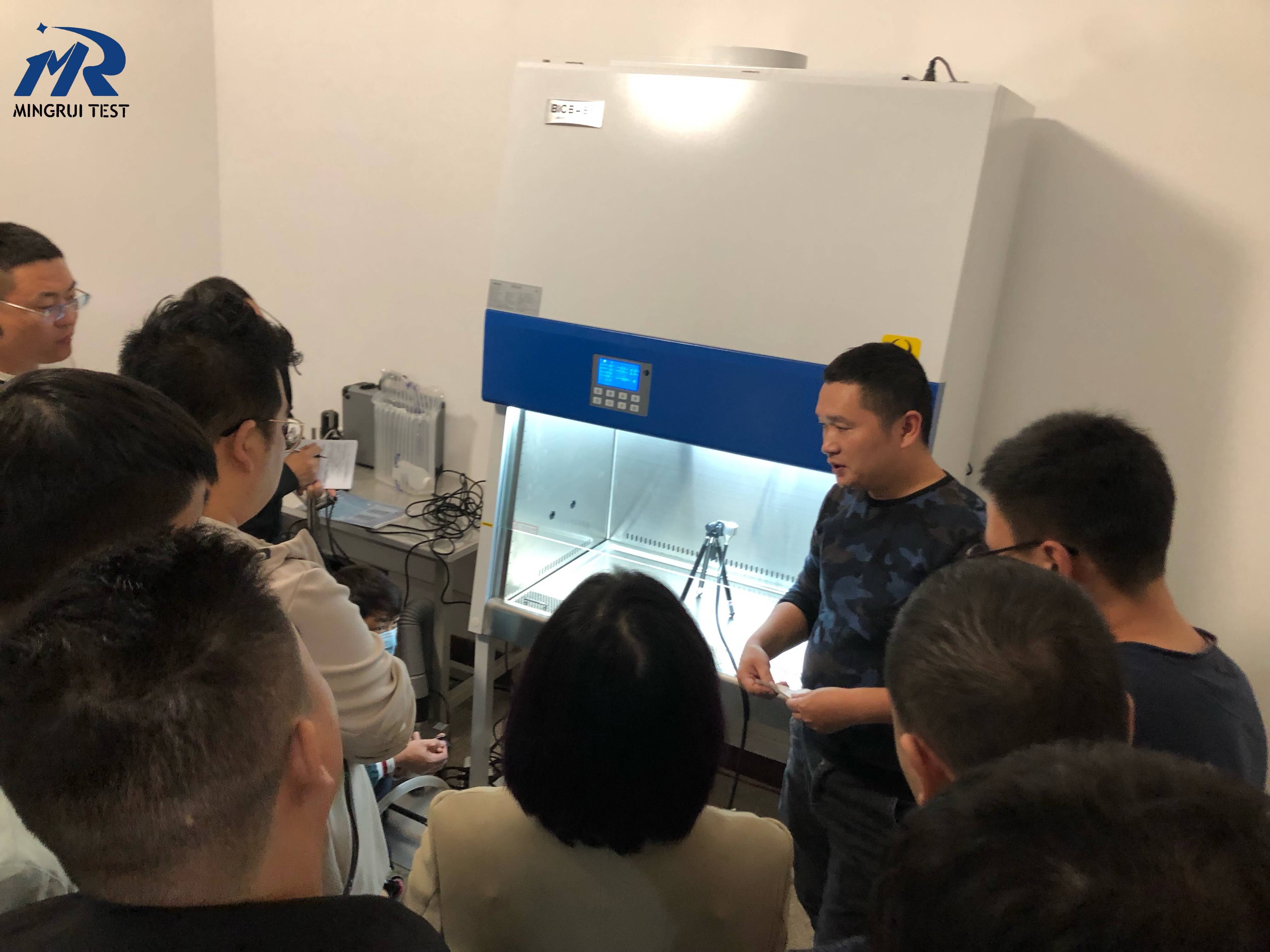 为了保证学员实际操作的学习效果,南京明瑞检测技术有限公司为本次培训班特地购置了全新的生物安全柜,并且免费提供全套标准设备以及场地。依照培训安排,安排专家进行分组现场演示。